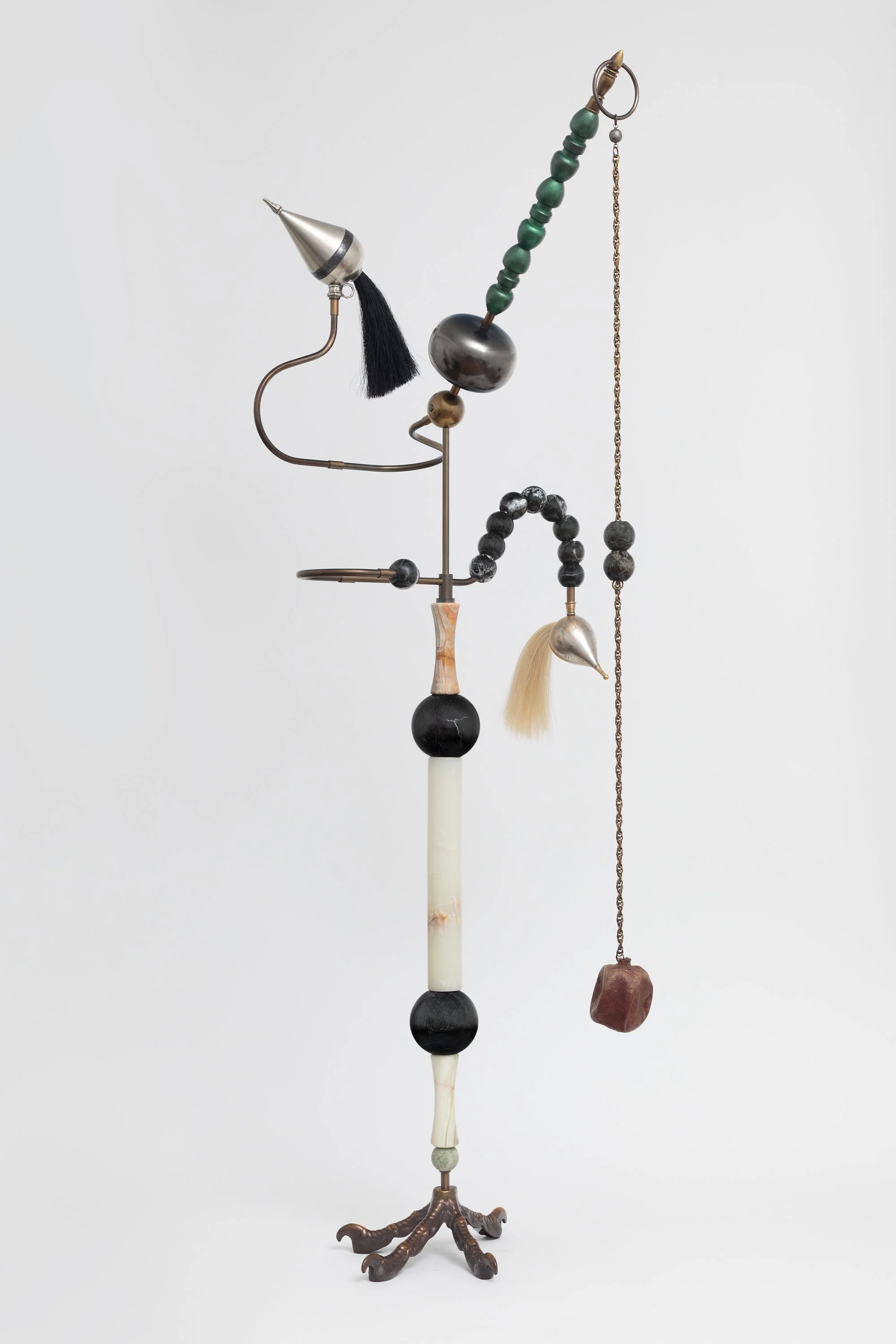 bronze, brass, marble, horse hair, wood, dried pomegranate